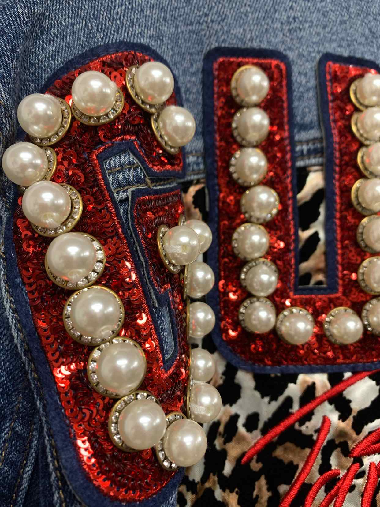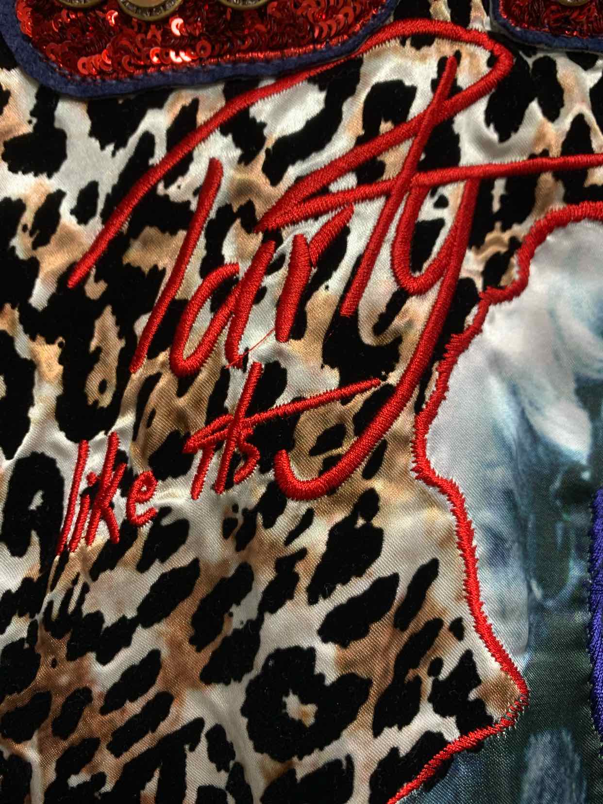 Denim BLING 3/D jacket animal print lady on back