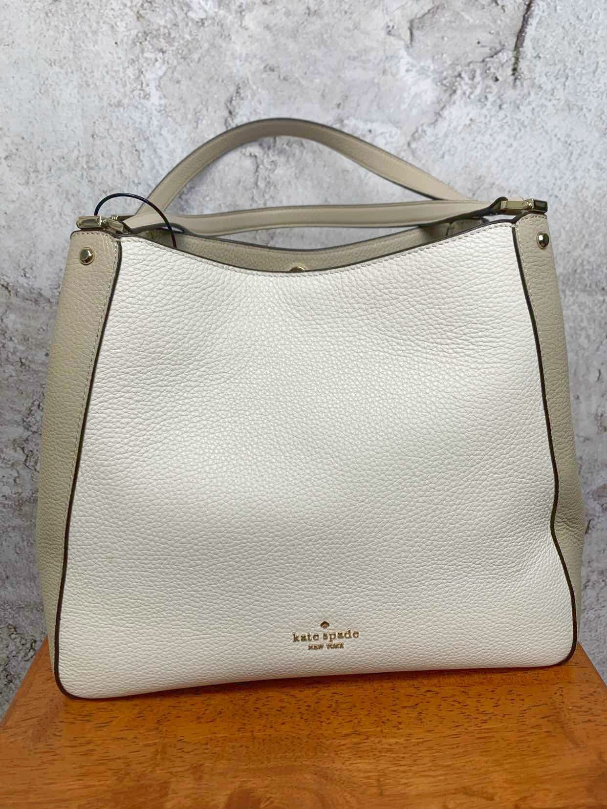 Kate Spade Leila Medium Triple Compartment Leather Shoulder Bag, Light Sand, NWT