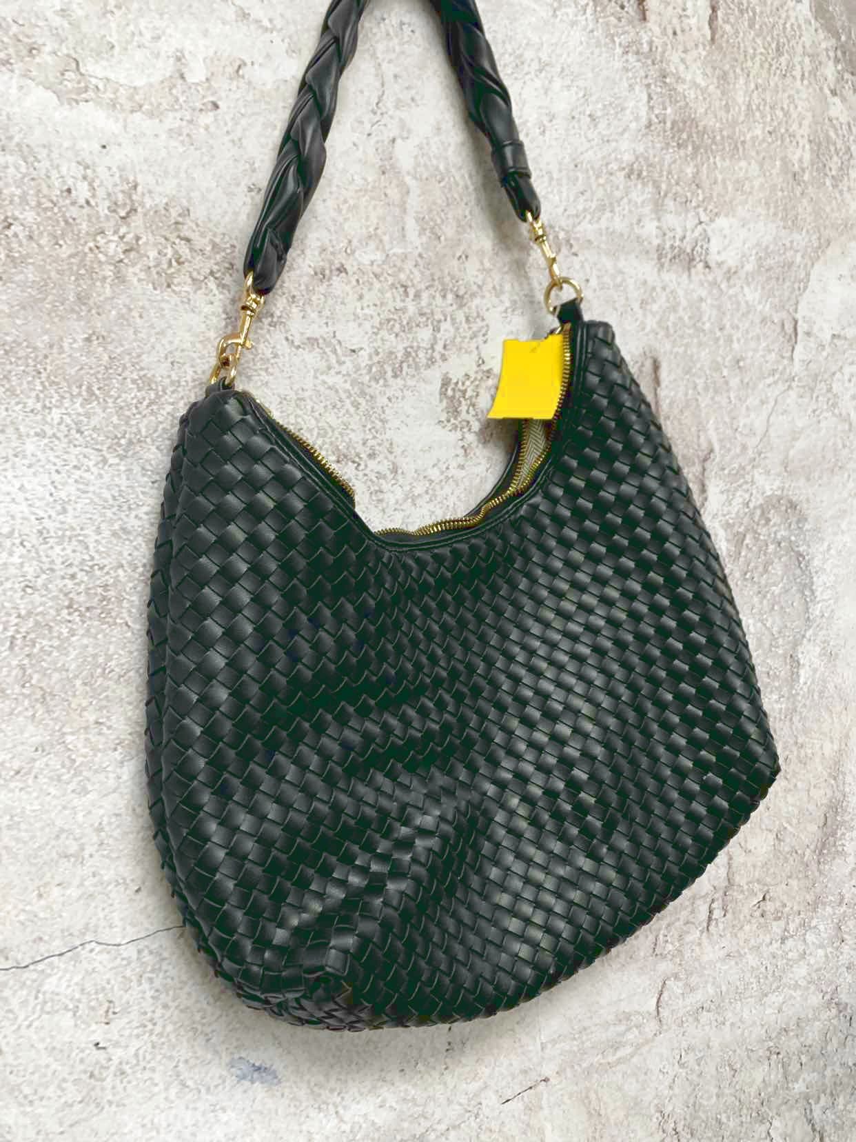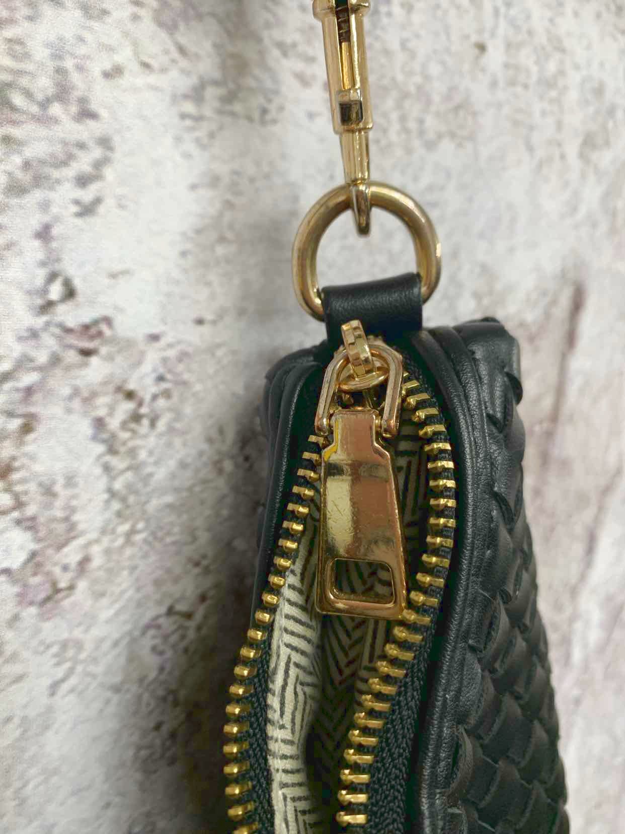 Blk basket weave like gold hardware